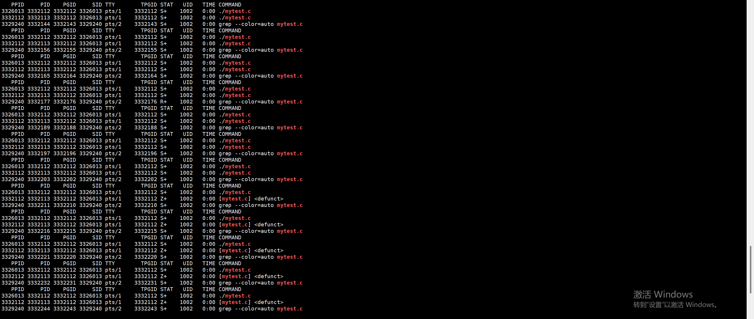 我们可以看到的是,我们的父进程确实通过wait回收子进程了,父进程等待子进程执行完才结束,但是我们并没有看到我们所谓的僵尸这一种状态,下面我们对代码进行修改。