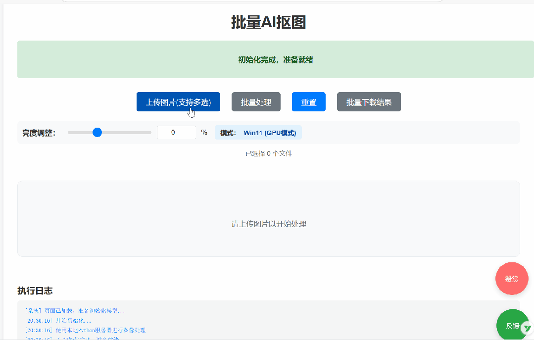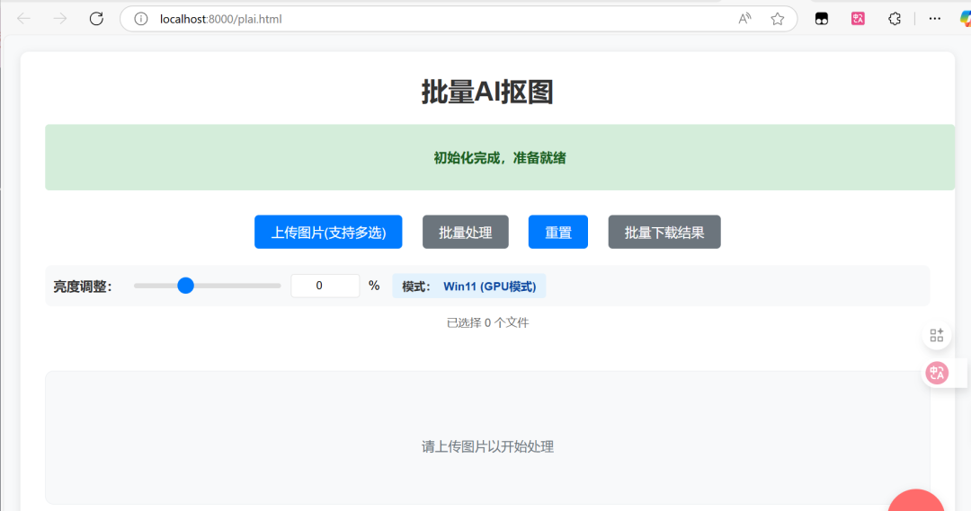 界面特简单,上传要抠的图片,直接点【批量处理】,等着就行。不用一个个调参数,大模型自动识别主体,懒人福音!