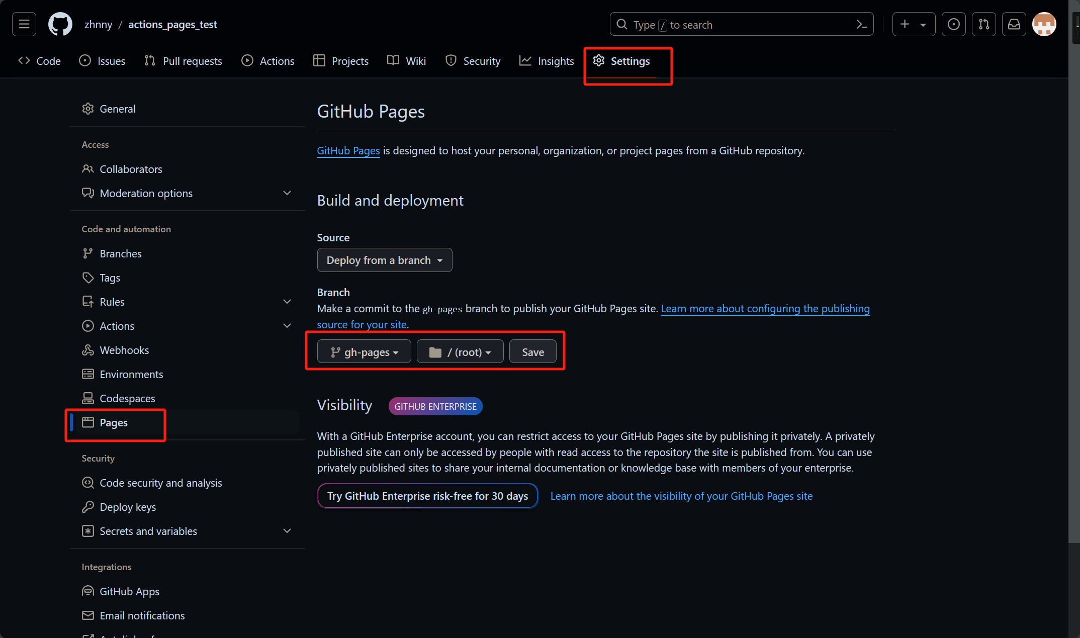 此时,离发布到网站还需要开启GitHub Pages,开启步骤如下图所示