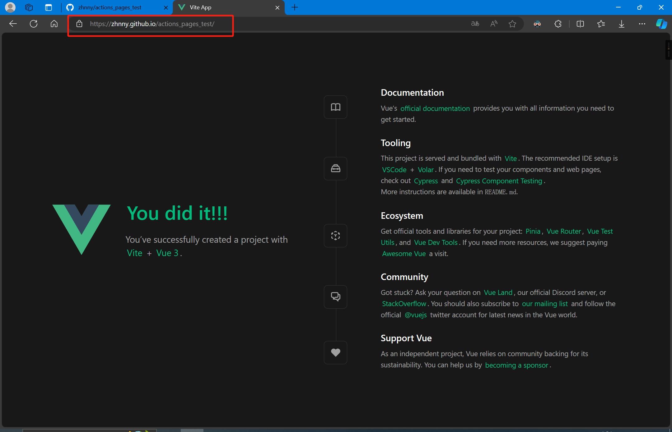 这里笔者简要记录使用GitHub Actions和GitHub Pages实现Vue项目的自动构建与发布,详细的使用文档请参考官方文档