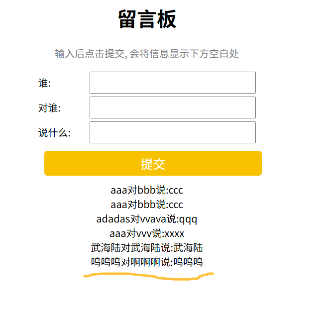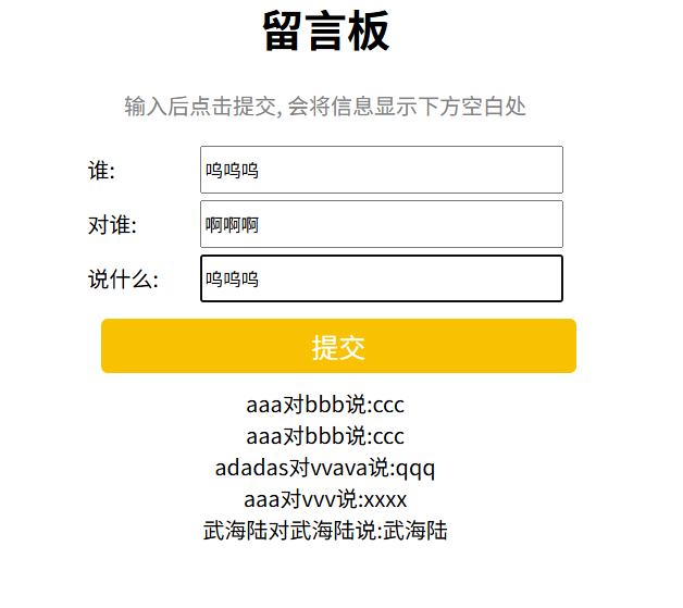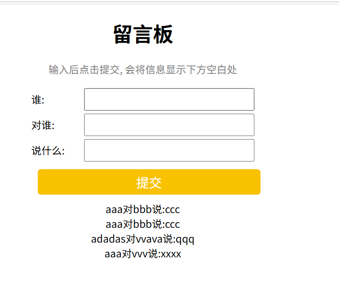 <p class="grey">输入后点击提交, 会将信息显示下方空白处</p>