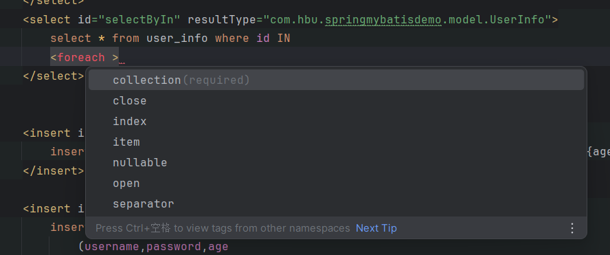 <select id="selectByIf" resultType="com.hbu.springmybatisdemo.model.UserInfo">