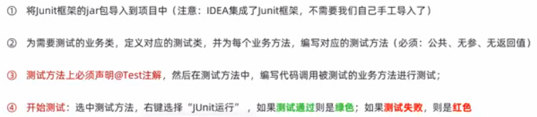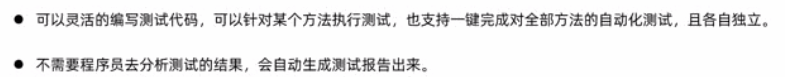 - 就是针对最小的功能单元(方法),编写测试代码对其进行正确性测试。