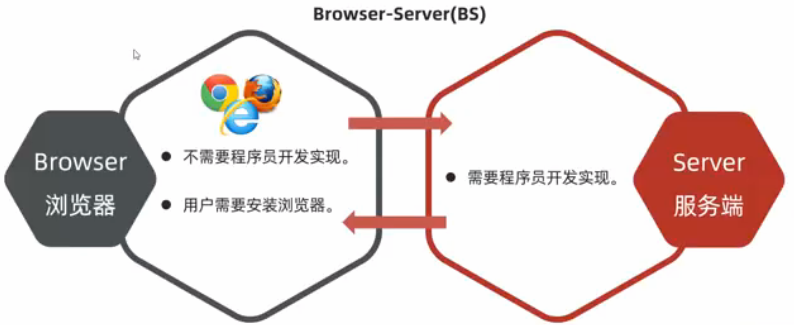 - 基本的通信架构有2种形式:CS架构(Client客户端/Server服务端)、BS架构(Browser浏览器/Server服务器)。