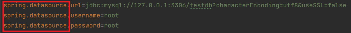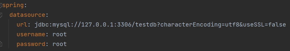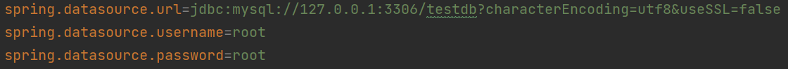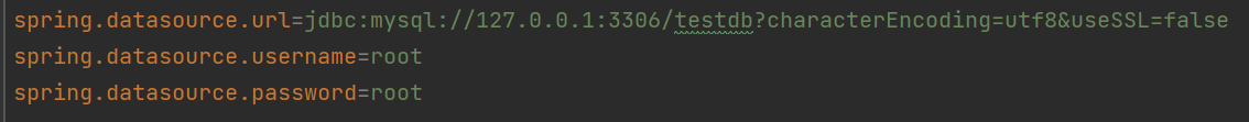 spring.datasource.url=jdbc:mysql://127.0.0.1:3306/testdb?characterEncoding=utf8&useSSL=false
