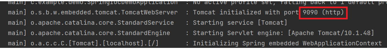 运行程序,观察日志,显示 Tomcat 启动端口号为 9090