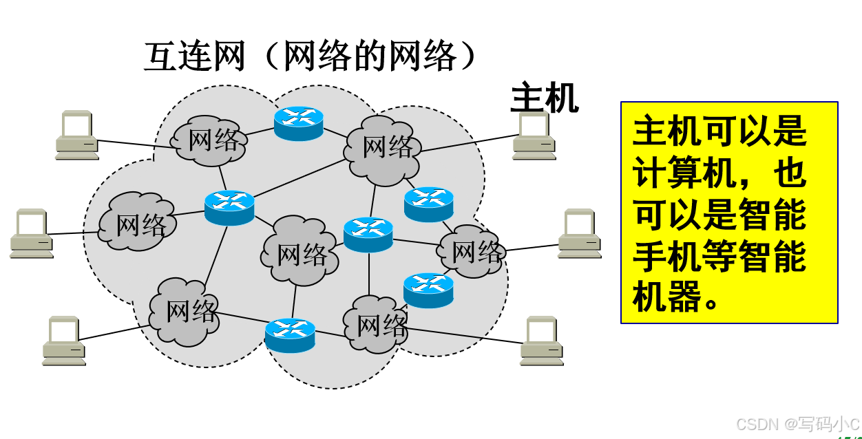 在习惯上,与网络相连的计算机常被称为主机(Host)。主机不仅指传统意义上的个人计算机,也包含智能手机、智能机器等具备网络通信能力的智能终端设备。