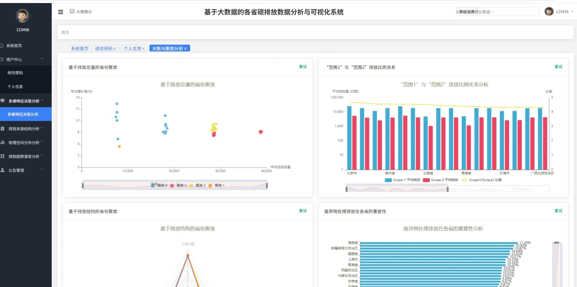 本项目《基于大数据的各省碳排放数据分析与可视化系统》通过对Spark大数据计算框架的应用,成功实现了对多维度碳排放数据的高效处理与深度挖掘。系统不仅展示了从时间演变到空间分布的全貌,还通过聚类算法识别了不同省份的排放模式,体现了数据分析在环境领域的应用潜力。在整个开发过程中,重点解决了数据清洗、复杂指标计算以及可视化展示等关键技术问题,实现了预期的各项功能。虽然在数据广度和算法复杂度上还有提升空间,但系统整体架构清晰,交互友好,较好地完成了既定的设计任务,为毕业设计交上了一份满意的答卷。