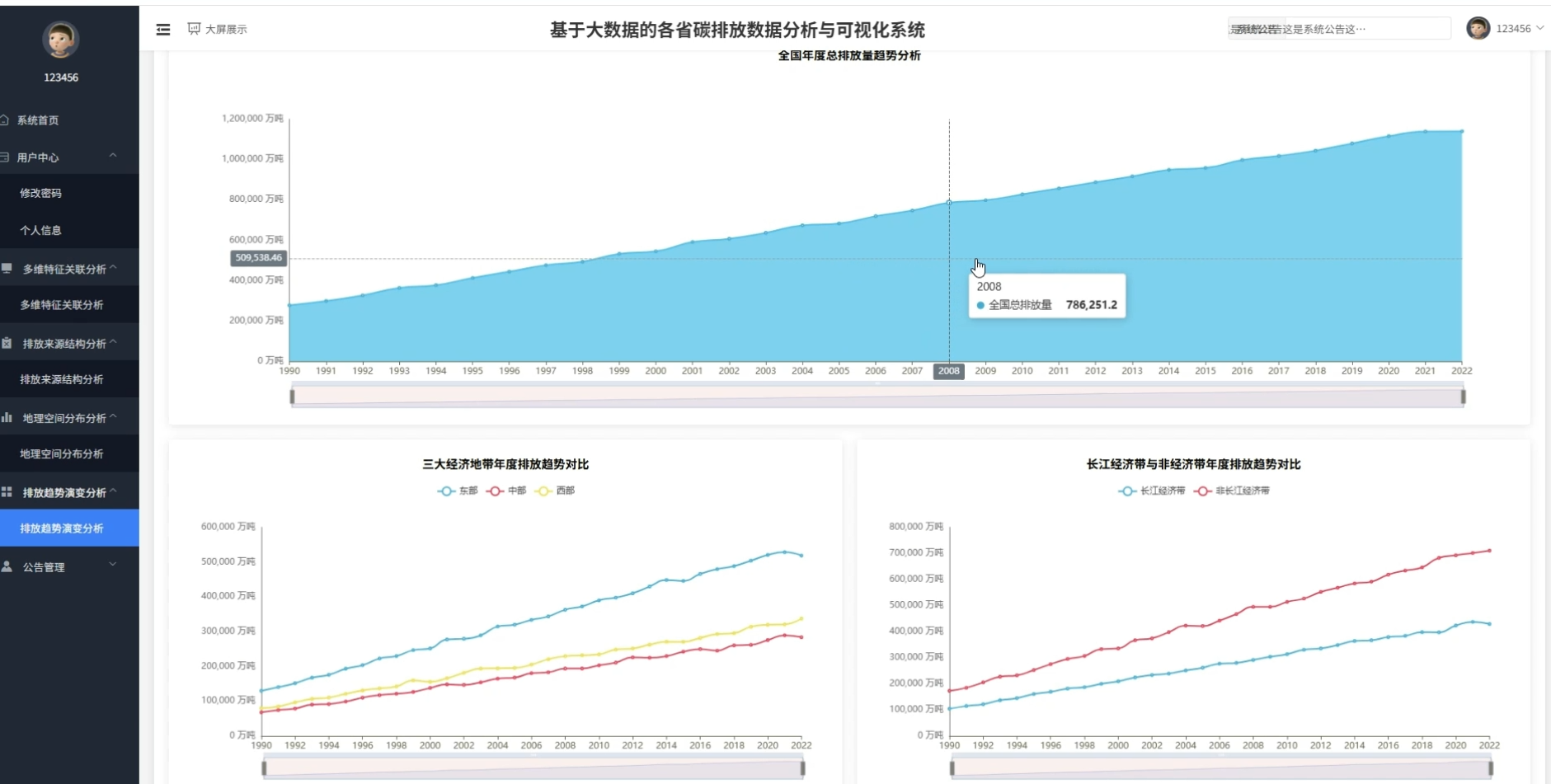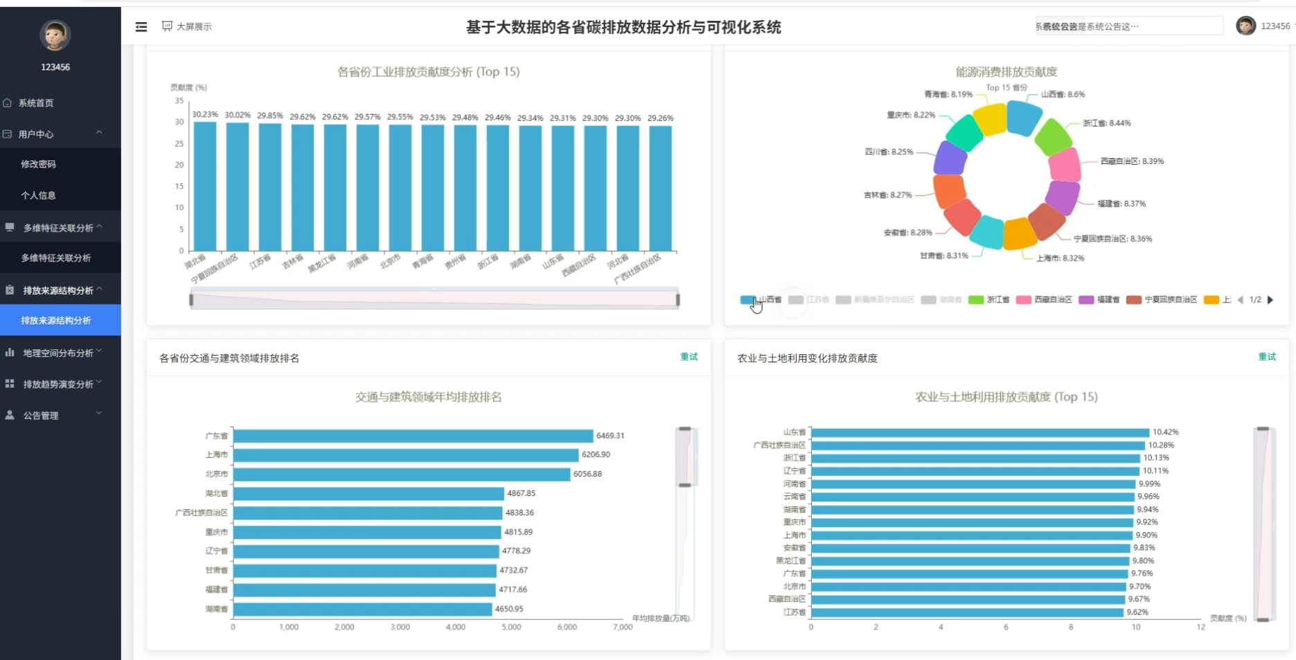 开发这套系统的初衷主要是为了锻炼自己处理大规模数据的能力,同时也希望能给相关领域的数据分析提供一个便捷的工具。从实际应用角度来看,系统通过直观的图表展示,能帮助使用者快速理解不同省份、不同行业的碳排放差异,不用再对着枯燥的Excel表格发愁。对于像我们这样的学生来说,这不仅仅是一个毕业设计项目,更是一次将大数据理论应用于具体实践的尝试。虽然系统功能可能无法媲美商业级软件,但它在整合多维度数据、展示区域排放特征方面确实发挥了一定作用,能够为关注环保话题的人士提供一种清晰的数据视角。做这个项目最大的收获,就是学会了如何用技术手段去解决现实生活中的复杂问题,这种解决问题的思路比项目本身更有价值。