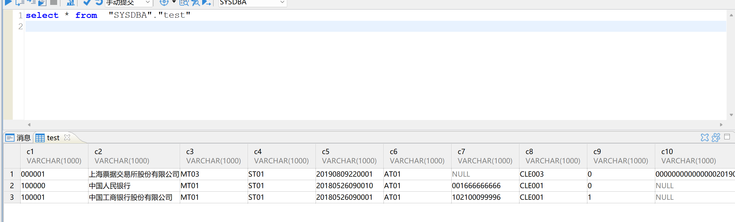 CREATE TABLE "SYSDBA"."test"