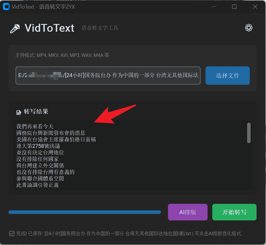 支持多格式与转写显示