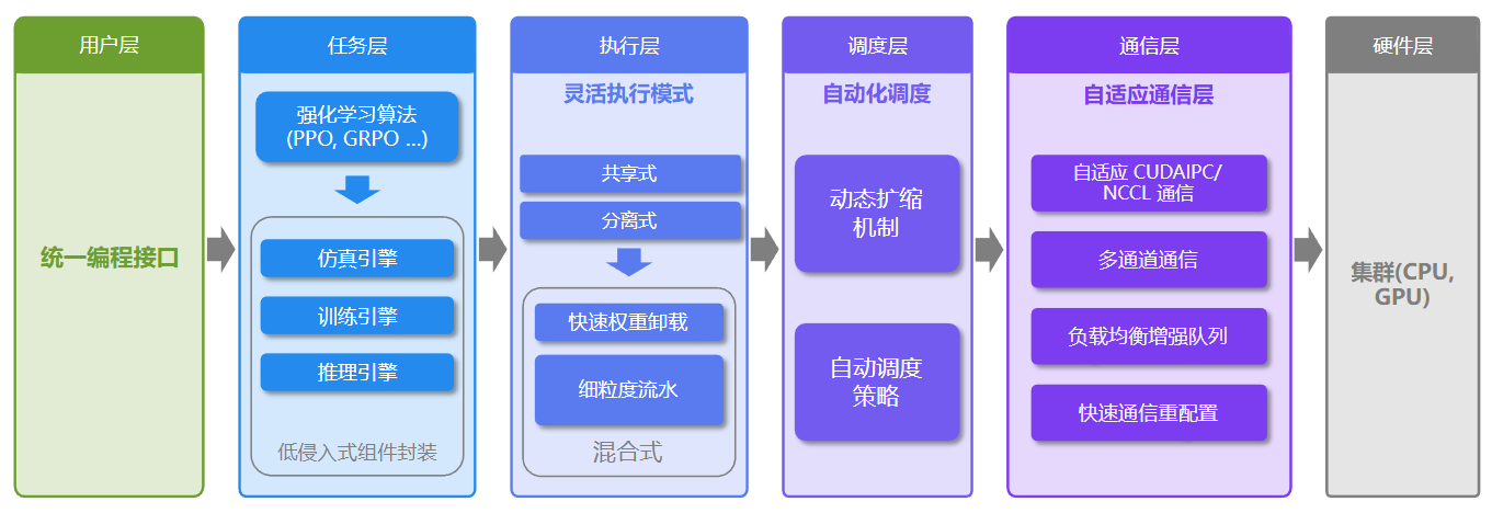 - πRL(强化学习微调):通过「在线与环境交互(Policy Rollout)→收集数据到 Buffer→用 PPO/GPPO 更新 Actor」的流程,让模型突破 SFT 瓶颈,提升性能与泛化性。