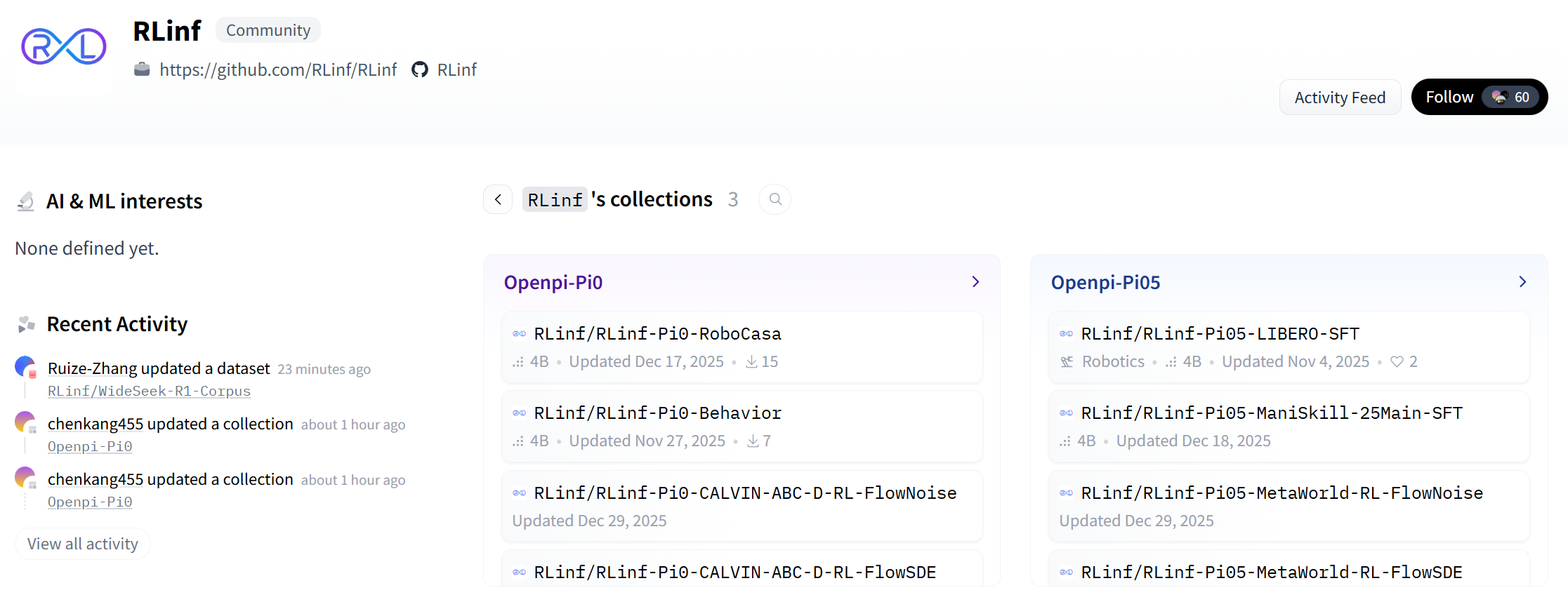 πRL是一款在线强化学习的VLA框架,适配π0、π0.5等基于流的VLA模型。