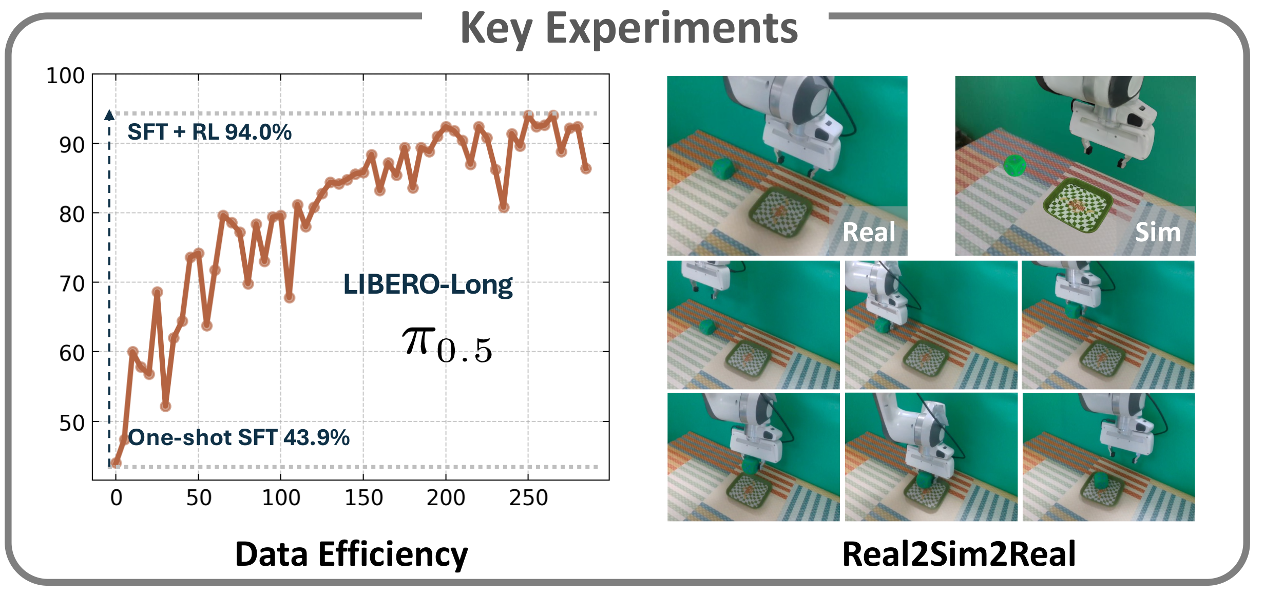 核心亮点:πRL 是「预训练→SFT」范式的延伸,通过环境交互实现从演示学习到自主学习的升级。