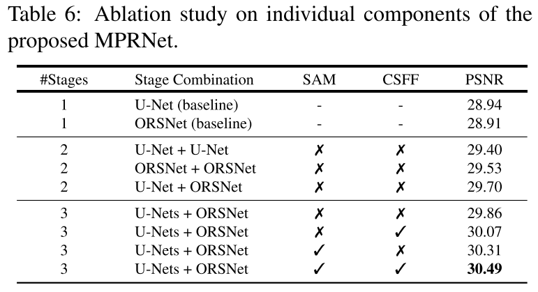 动机:然而,(1)在一个多阶段的架构中, 两种设计选择的组合是有效的图像恢复所必需的。