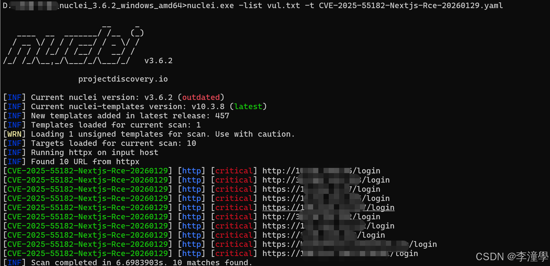 把这个脚本拿出来用Nuclei工具并引用这个脚本去跑批量