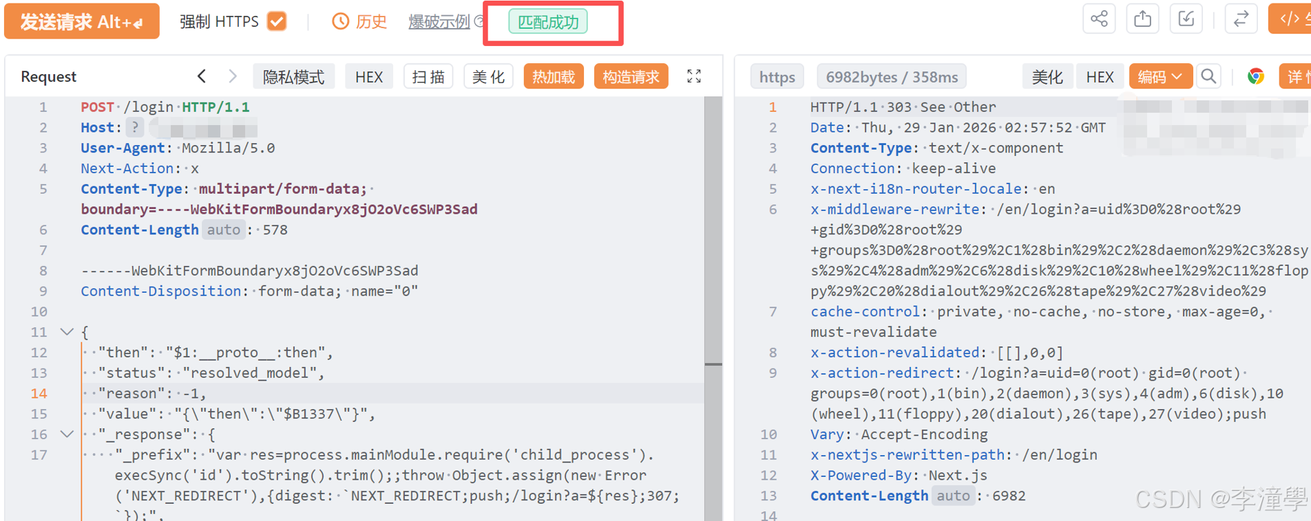 然后我们重新发送数据包,就会出现匹配成功的显示