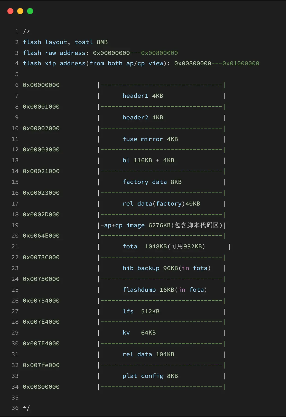 虽然这个房间总大小 1048KB,但是 fota 升级包大小并不等于 fota 分区空间大小。