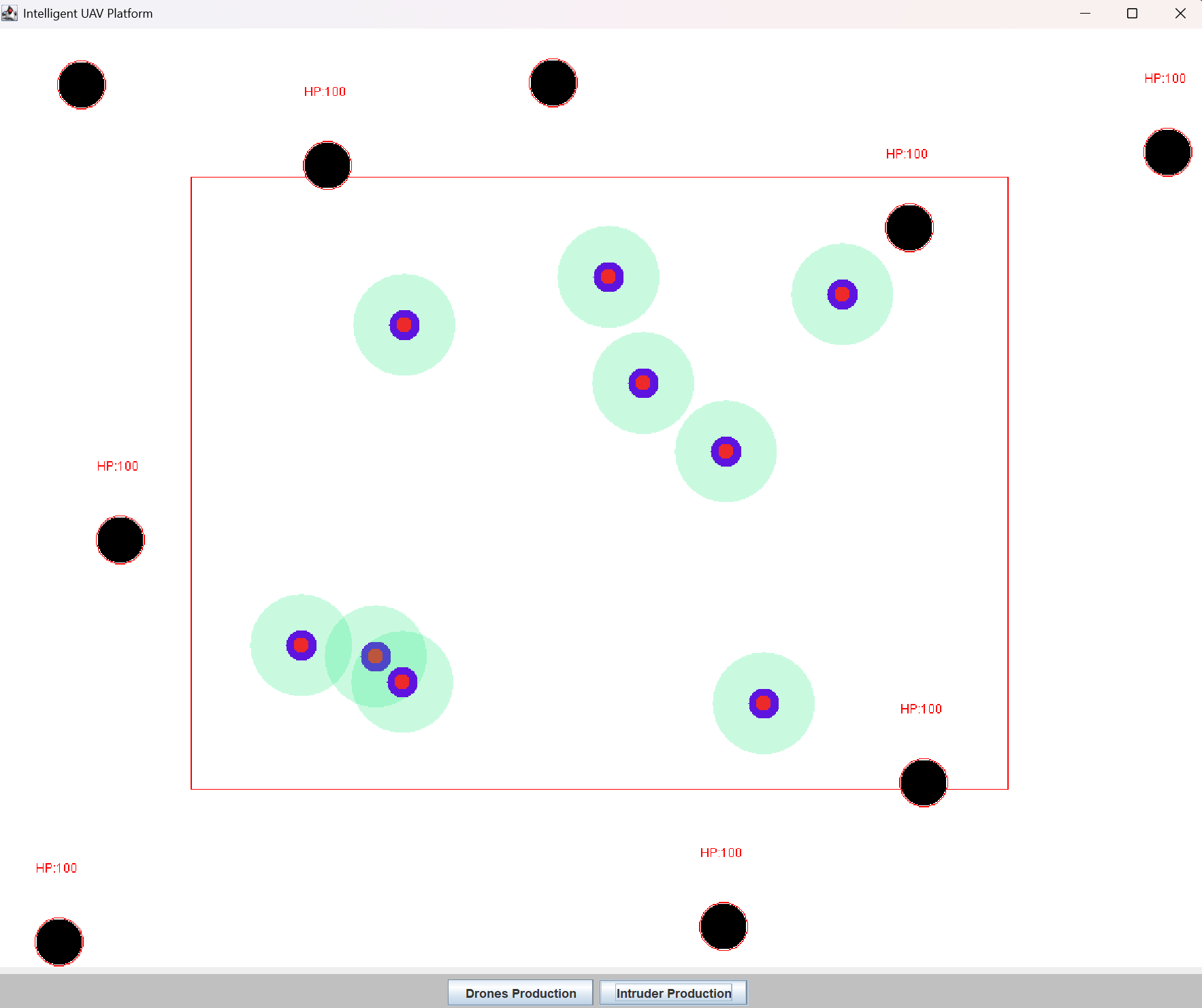 | 事件监听模块 | DroneListener | 监听按钮点击事件,动态生成无人机 / 入侵者对象并加入共享集合 |