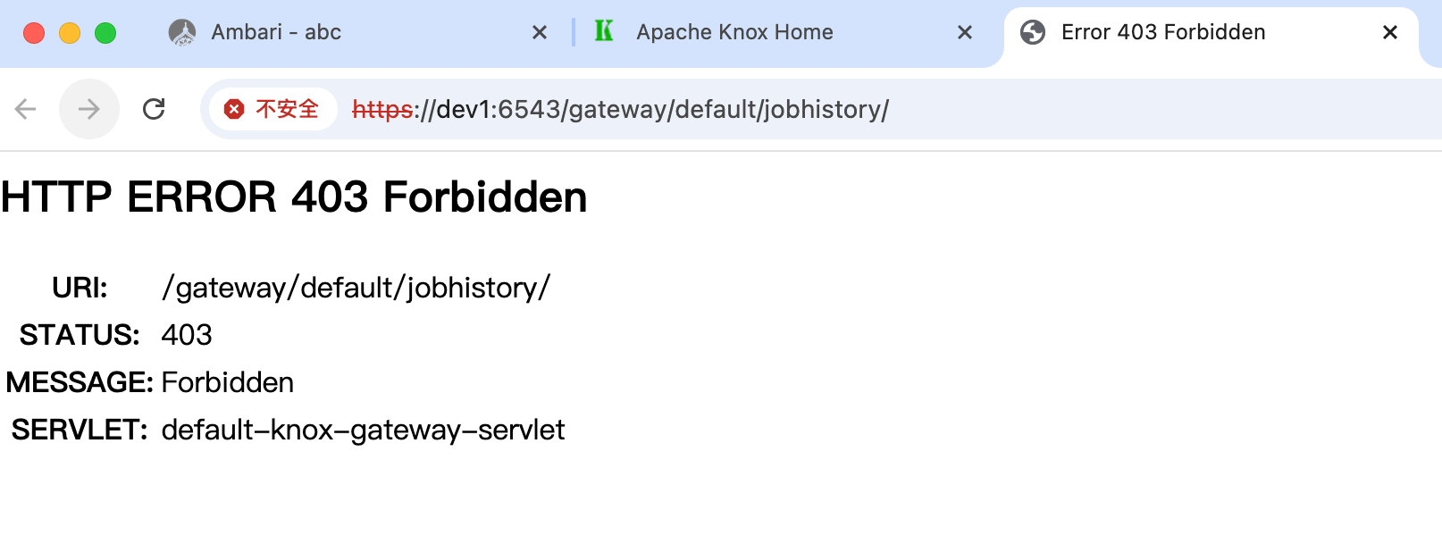 当配置为"只能访问 hdfs"后,其它就访问不了了: