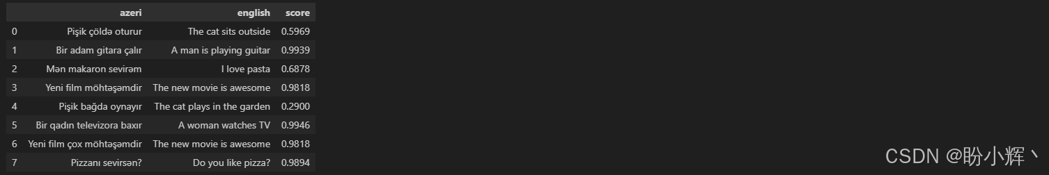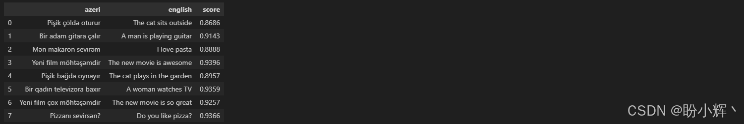 在本节中,我们将学习如何使用在跨语言自然语言推理 (Cross-Lingual Natural Language Inference, XNLI) 数据集上预训练的跨语言模型,来查找不同语言中的相似文本,我们可以将其应用于抄袭检测系统。我们将使用阿塞拜疆语的句子,看看 XLM-R 是否能找到与之相似的英语句子。