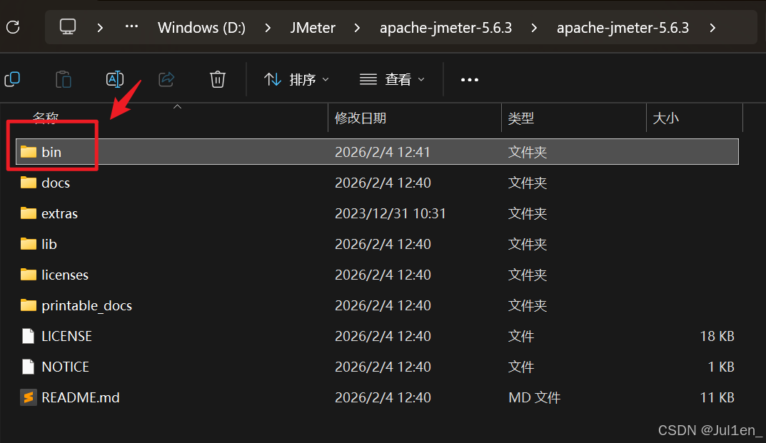 以我的放在D盘的JMeter文件夹为例,路径如下
