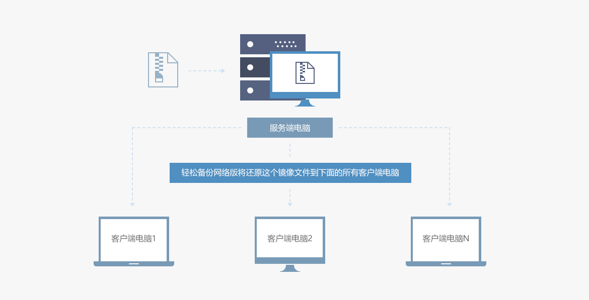 轻松备份网络版是一个网络还原工具,拥有系统还原和磁盘还原的集中管理功能,能实现将一个镜像文件还原到局域网的多台电脑;它也是一个网刻工具,轻松解决您的网络克隆问题,支持将系统或磁盘批量克隆到局域网的多台电脑上。轻松解决局域网批量电脑的还原问题和一批电脑系统安装问题。