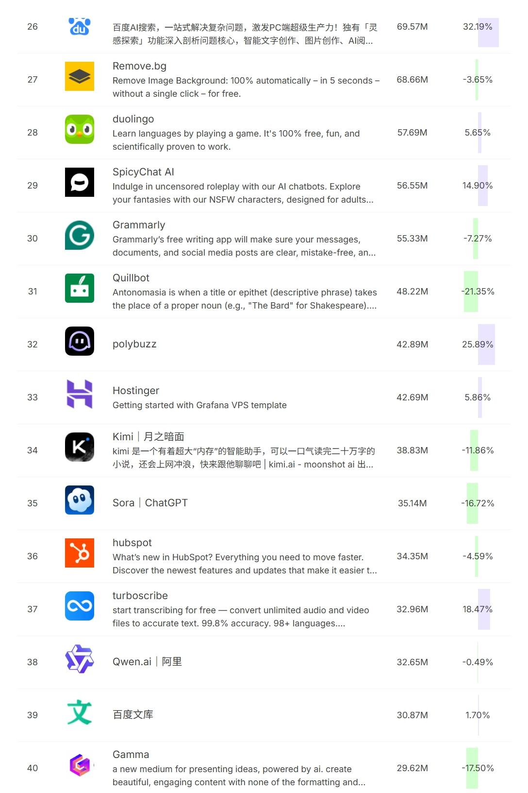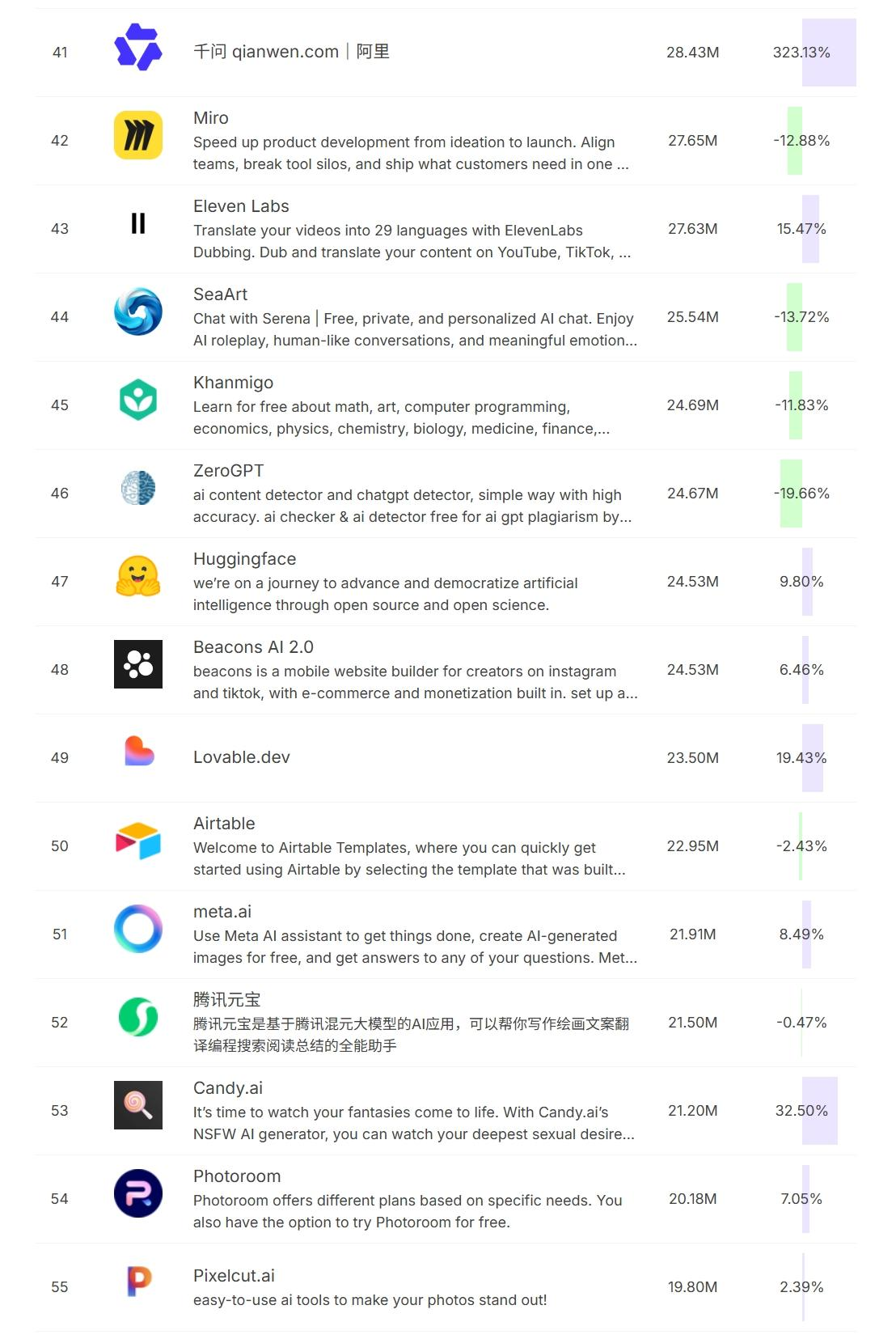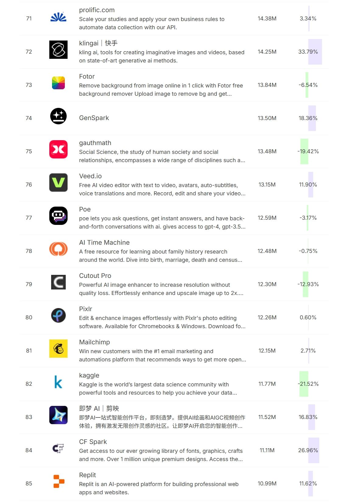 **数据来源:**AI产品榜,全球 AI 榜单标准制定者