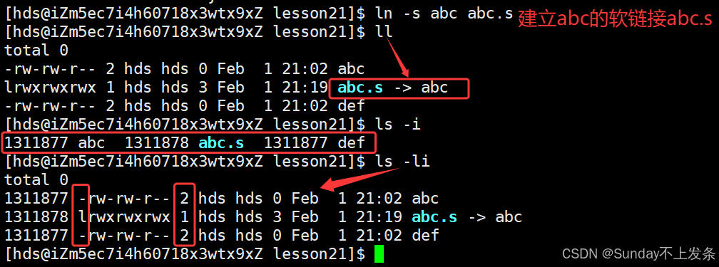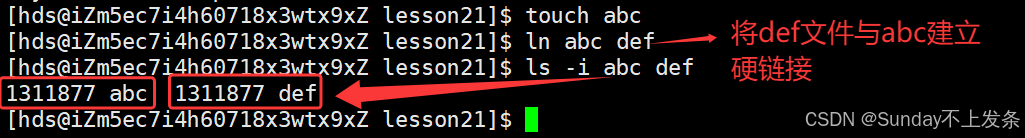 文件 abc与文件def 的inode 相同。