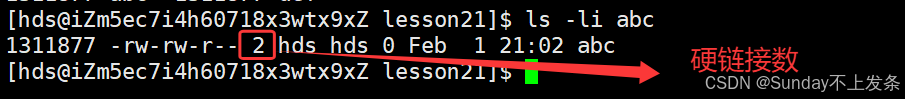 bashls -li abc // 查看abc的硬链接数