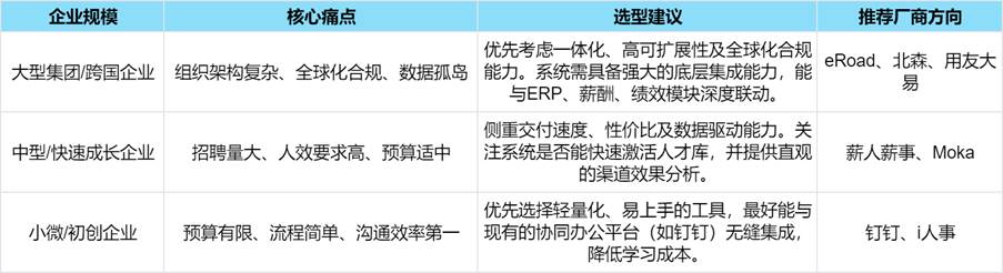 企业在选型过程中,切忌盲目追求"功能全"或"技术新",而应基于自身的组织规模、行业特性及核心痛点进行差异化考量。