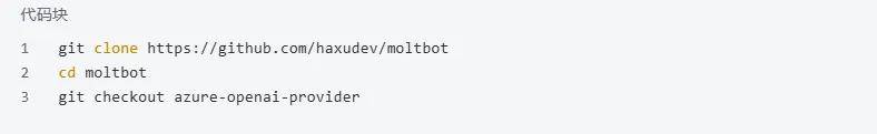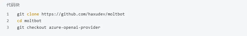 - 克隆适配 Azure OpenAI 服务(国际版)的 Moltbot 版本(前文已给出具体命令);