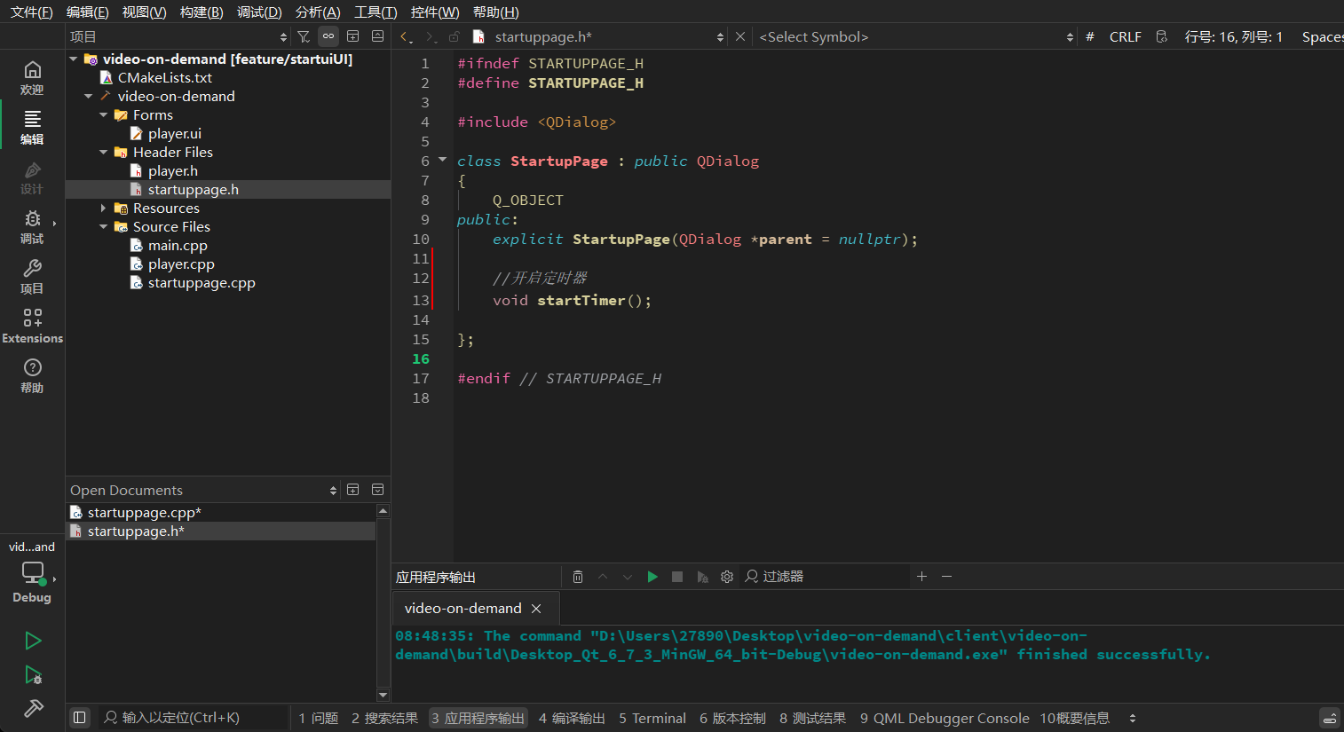 启动页的生命周期应当是短暂且自动结束的。我们引入 QTimer 定时器来实现自动跳转逻辑。