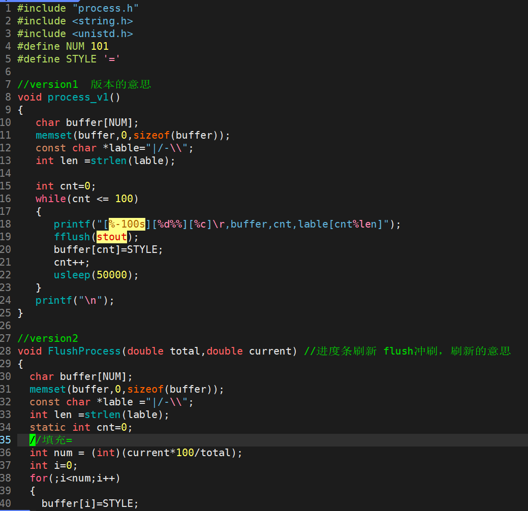 以上是我们今天要实现的进度条,按照download的程度来定义百分比和=的进度,以及|\-/;