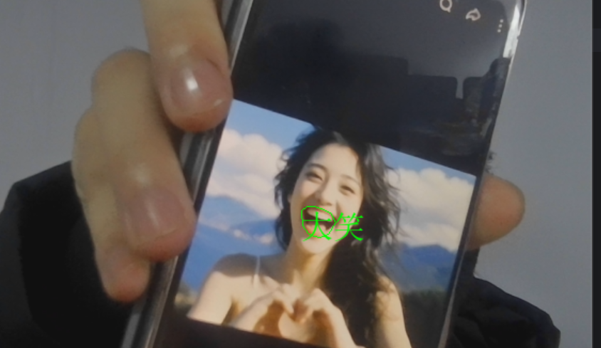frame = cv2AddChineseText(frame, result, tuple(mouthHull[0, 0]))