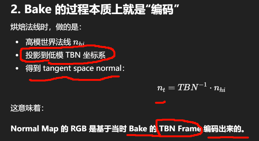 Normal Map 必须和 Bake 时的 TBN 完全一致。