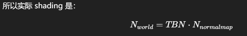 在 Tangent Space Normal Map 工作流里,最终表面法线不是贴图单独决定的,而是: