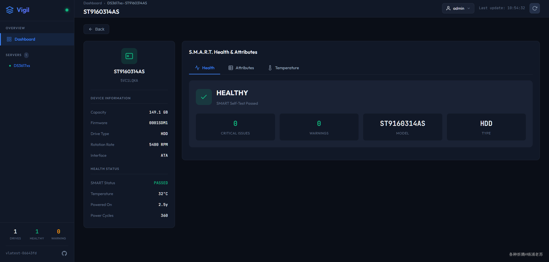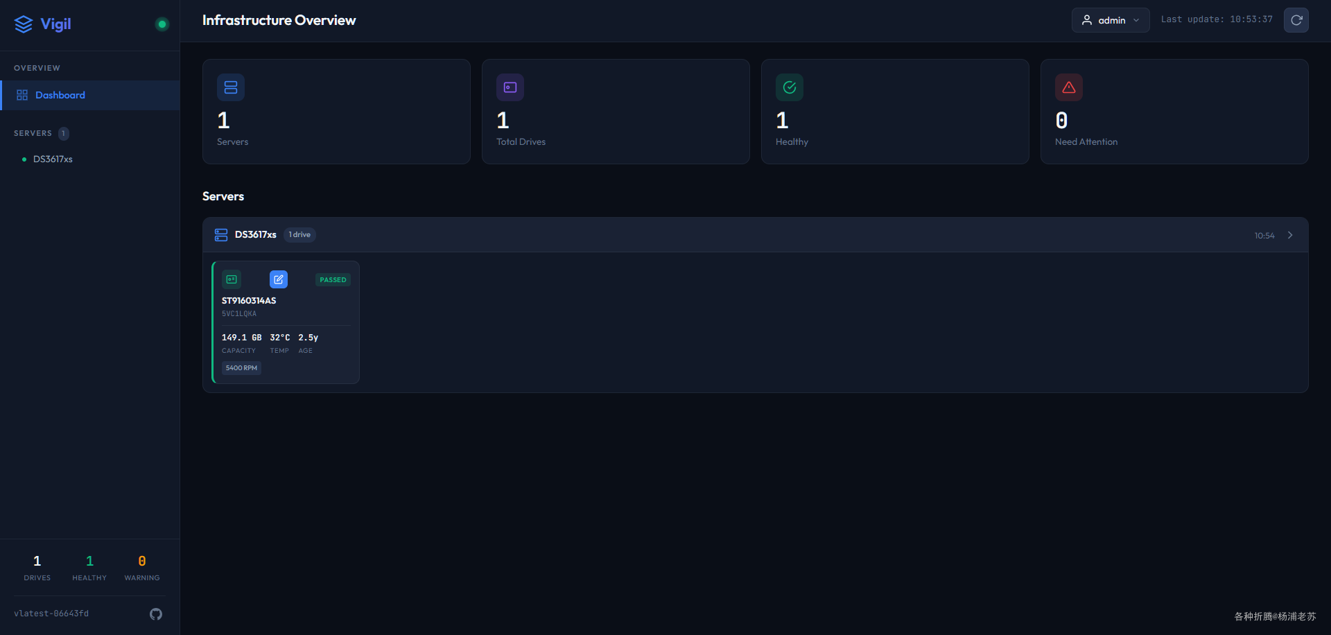 Vigil是一个现代、轻量级、开源的服务器监控系统,提供对硬盘和SSD的实时S.M.A.R.T.健康状况跟踪。它为速度和简单性而设计,通过现代化的Web仪表盘和预测性健康分析提供对基础设施的即时可见性,以防止硬件故障。它适用于任何Linux系统,包括那些配备了LSI/Broadcom HBA控制器的系统。