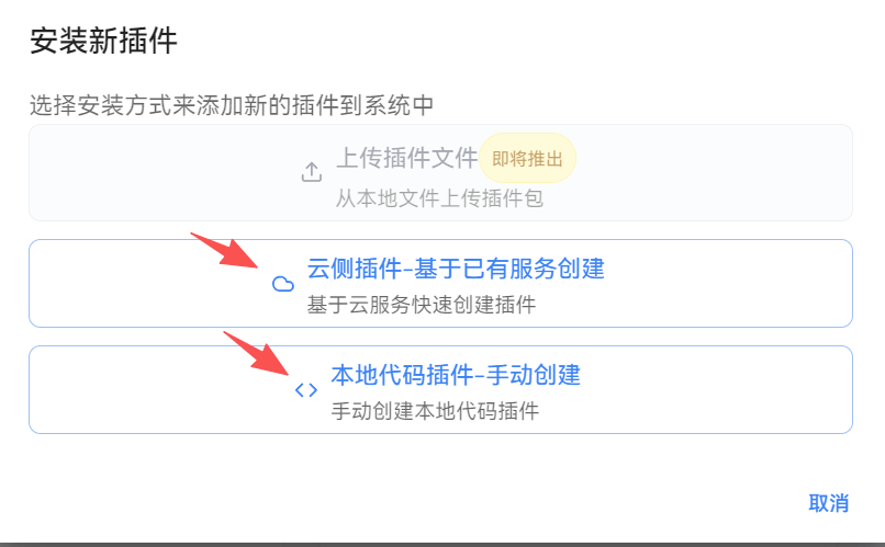 这边二者插件都可以创建,本地代码插件的运行逻辑是通过配置.env环境的变量: