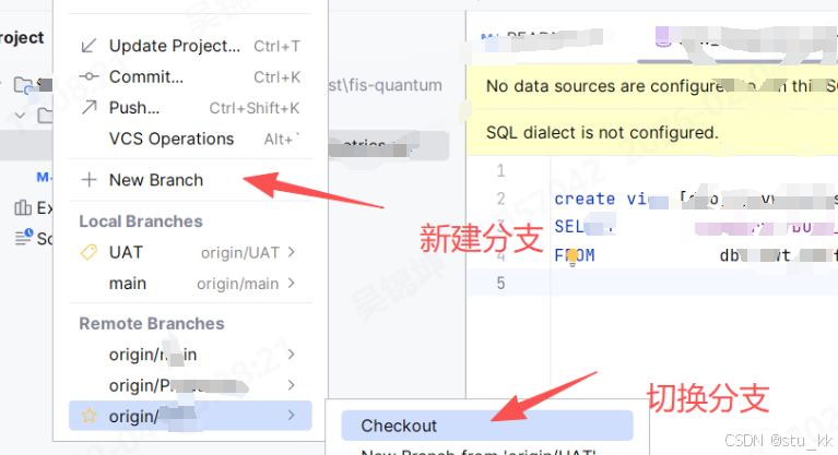 git stash暂存后切换,返回后用pop恢复继续开发; - 拉取远程代码(