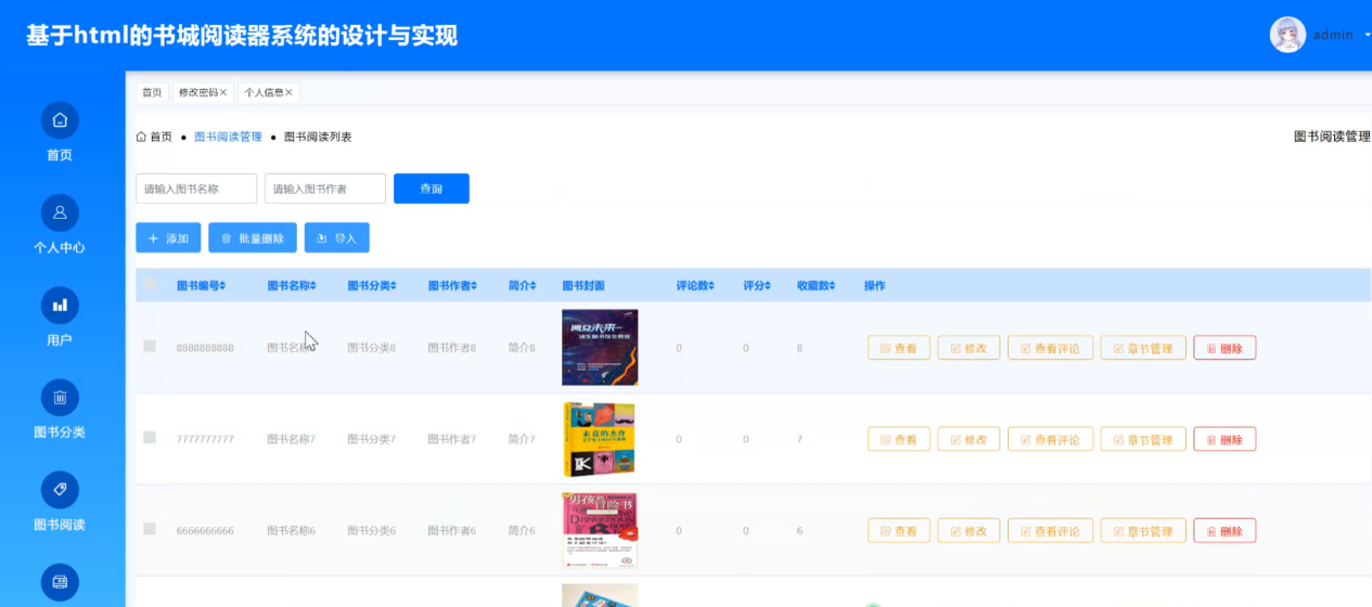 - 个人中心:查看/修改个人信息、管理收藏、发布/编辑阅读心得