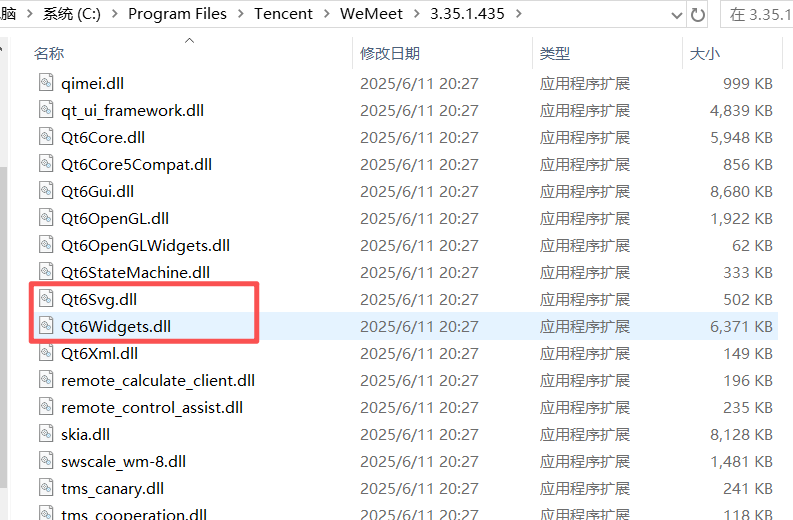 在以往的分享中,我们主要的经历大多放在认识数据结构上,少有的一点经历则放在了算法的应用、数据图像处理等地方。但是博主毕业后很遗憾的进入了小公司,变成了什么都得多少干点的状态。在实际项目中,除了计算得到正确的结果,还有一个非常重要的功能,就是怎样把这个结果展示给客户,最头疼的是能让不懂代码的人也可以操作。其实直观一点理解,我们在操作电脑时,大部分时间无论用的是网页或是app,看到的页面也都不是底层的代码,而实际上做出这样app的一个典型代表就是本章节的主角------QT。QT最为人熟知的就是它写界面的能力,就以我们熟知的腾讯会议,在他的安装目录里就不乏QT的影子: