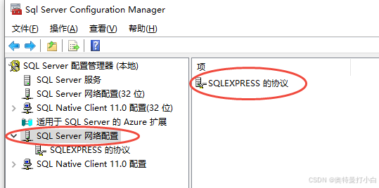 点击 "SQLEXPRESS 的协议"(右侧会显示该实例的网络协议列表);