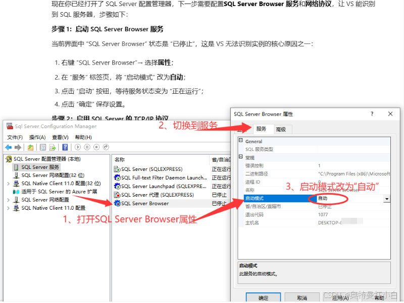 - [2. SQL Browser服务配置](#2. SQL Browser服务配置)