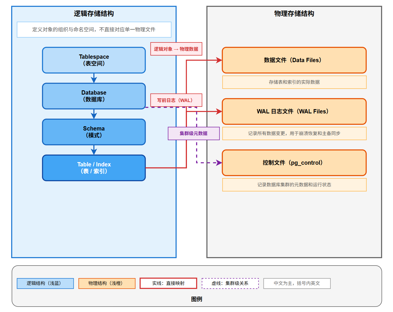控制文件 (pg_control) : 记录数据库集群的元数据和状态信息。