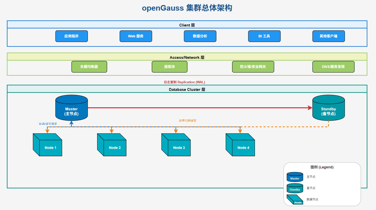 openGauss 采用 Shared-Nothing 架构,每个节点都拥有自己独立的 CPU、内存和存储,节点之间通过网络进行通信,具备良好的扩展性。