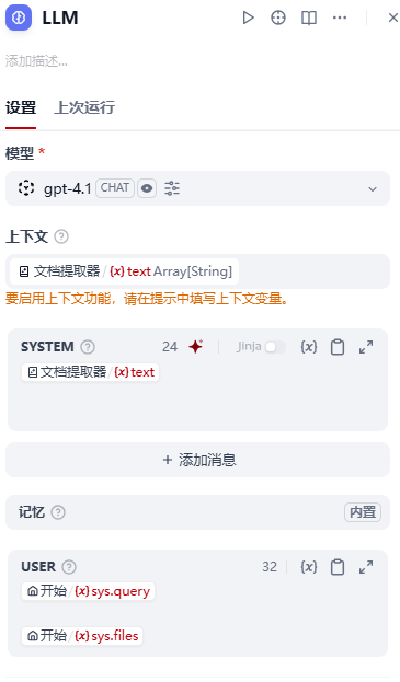 【9】添加LLM节点,参数设置如下