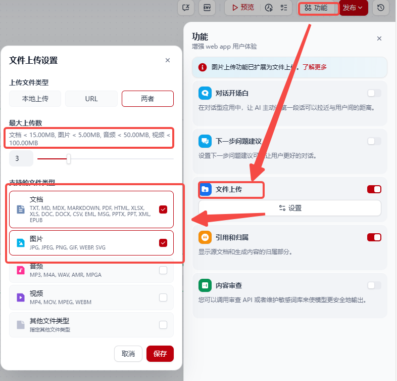 - 增加图片和文档上传能力