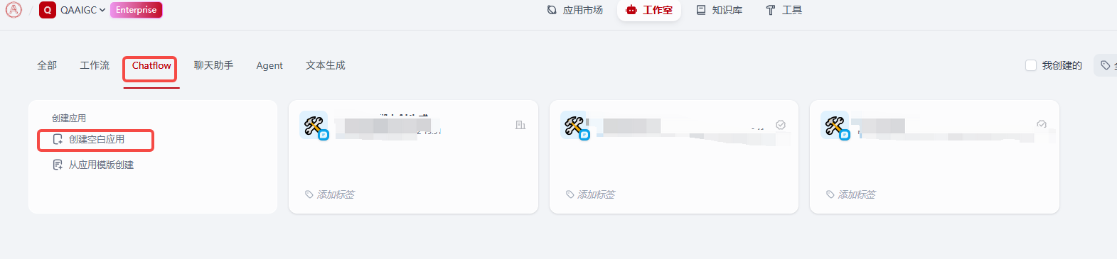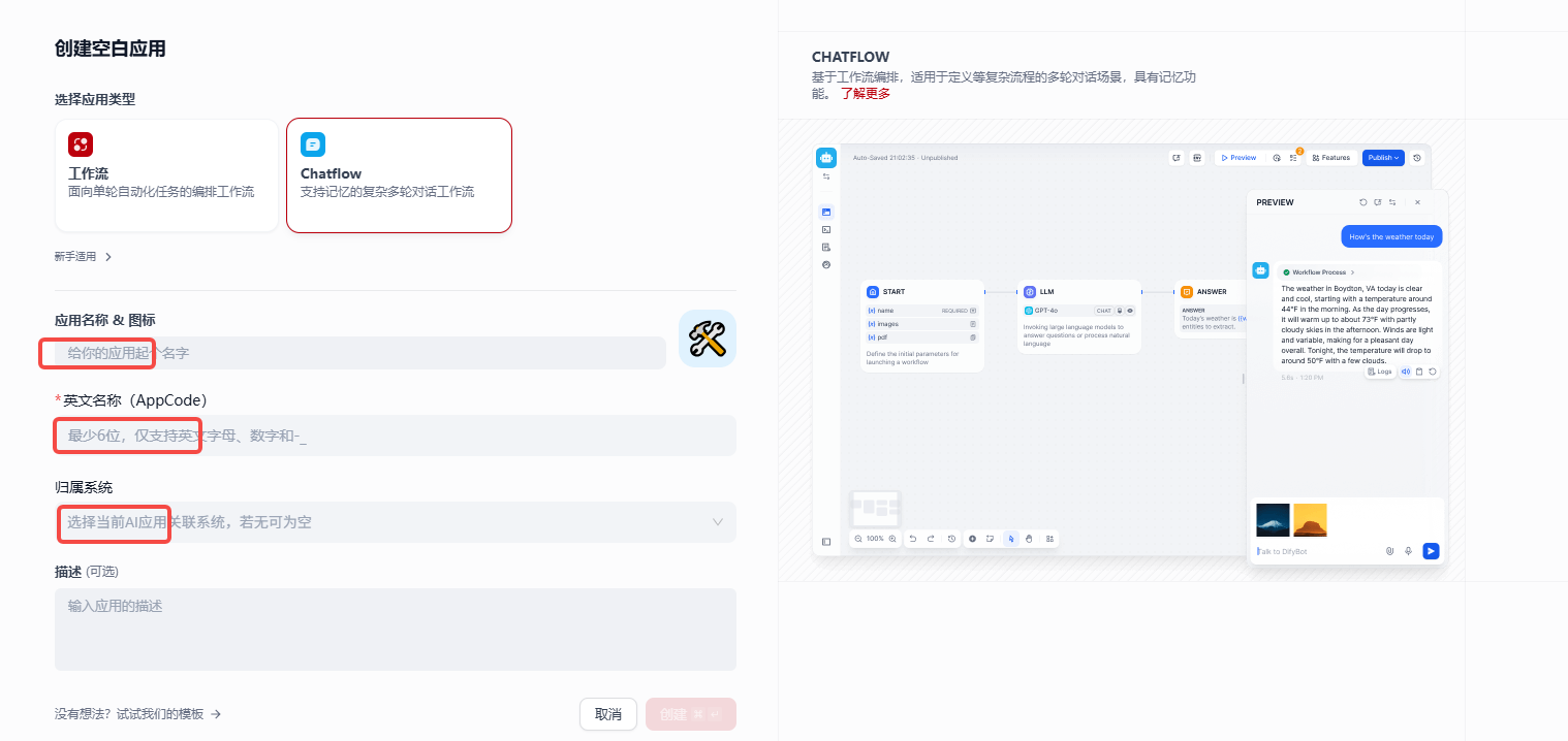 我们需要在dify中创建一个Chatflow ,通过调用Chatflow接口实现大文本内容的交互,步骤如下: